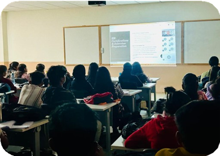 The session started with a Group Discussion on emerging trends and technologies, followed by individual interviews. Students were assessed on their communication, reasoning, strategic thinking, and interview skills. Faculty and the industry expert gave constructive feedback, helping students understand their strengths and areas for improvement.