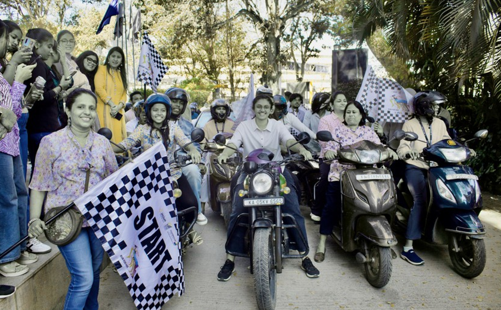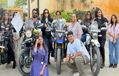 The event was further enriched by the presence of distinguished guest bikers. Ms. Archana Timmaraju, a deaf biker who has travelled over 66,000 kilometres, inspired participants through her journey of determination and resilience. Ms. R. Anju Choudhary motivated students by sharing her experiences as a female biker and advocate of women empowerment. Ms. Yashu C, a professional working at HireRight, highlighted the importance of balancing career and personal passion, while Mr. Noel encouraged safe and responsible riding practices.